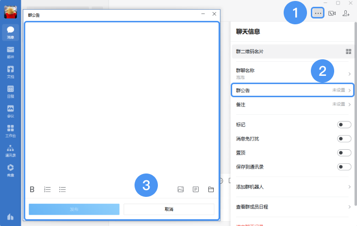 登錄電腦端企業微信,進入需要發群公告的社群群聊頁面,點擊右上角三個點“...”——“群公告”——設置好群公告內容——“發布”即可。